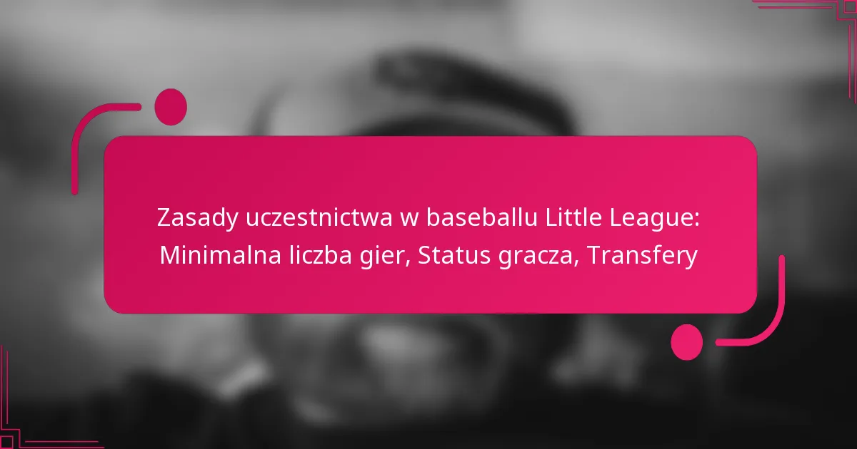 Little League Baseball ma określone zasady uczestnictwa, które wymagają od graczy udziału w minimalnej liczbie gier, aby utrzymać kwalifikacje przez cały sezon. Kluczowe czynniki, takie jak wiek, miejsce zamieszkania i wybór drużyny, określają status gracza, zapewniając zgodność z regulacjami ligi. Dodatkowo proces transferu pozwala graczom na zmianę drużyn, dając im możliwość znalezienia najlepszego dopasowania do ich umiejętności i zainteresowań.