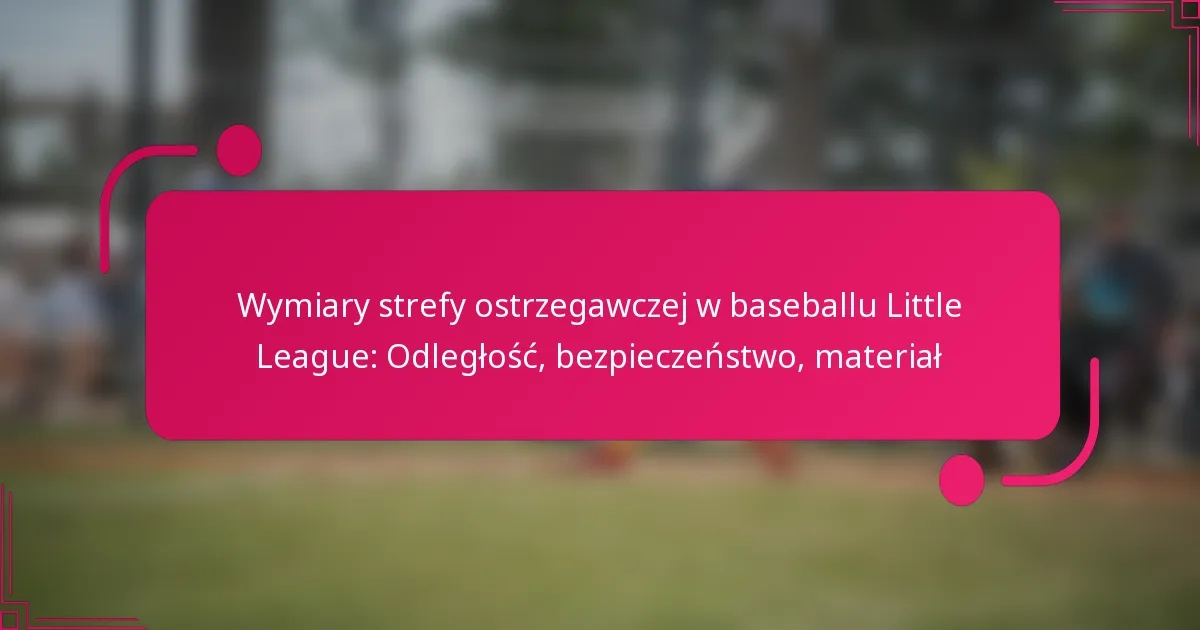Ścieżka ostrzegawcza w baseballu Little League pełni istotną funkcję bezpieczeństwa, tworząc strefę buforową między ogrodzeniem boiska a polem gry. Zwykle ma około 3 metrów szerokości, a te ścieżki pomagają graczom ocenić swoją bliskość do ogrodzenia, zmniejszając ryzyko kolizji. Wykonane z materiałów takich jak ziemia, trawa lub żwir, wybór powierzchni może wpływać zarówno na bezpieczeństwo graczy, jak i na utrzymanie boiska.